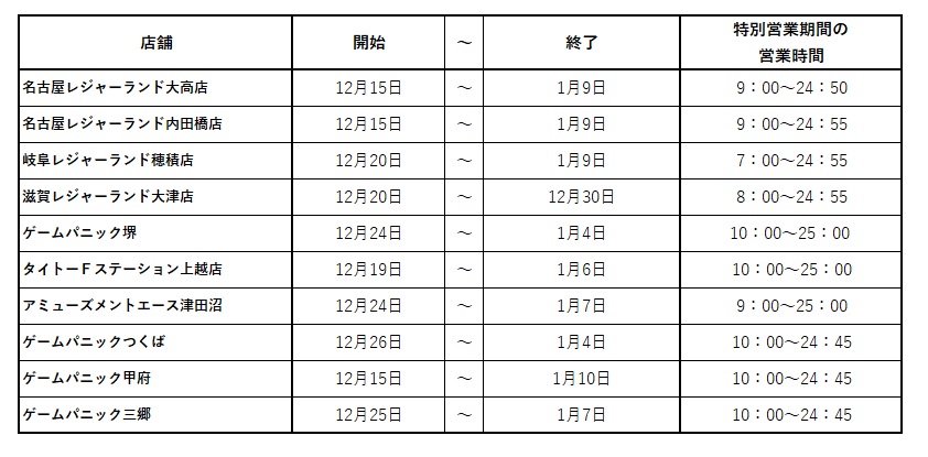 2025/12/12 年末年始、一部店舗における延長営業の実施について
